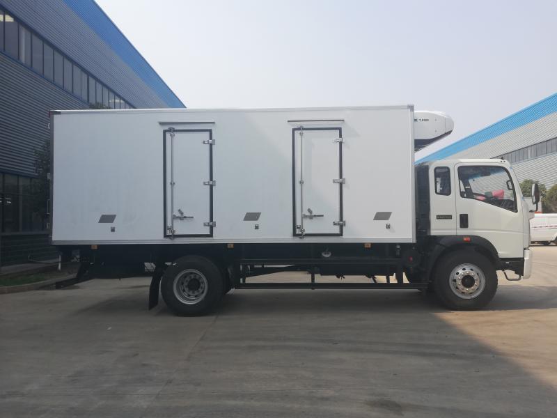 van body(inner glass steel, outer glass steel,8cm polyurethane foam insulation),stainless steel locks, stainless steel door frame, with overhead light and anti collision device, domestic refrigeration unit |
