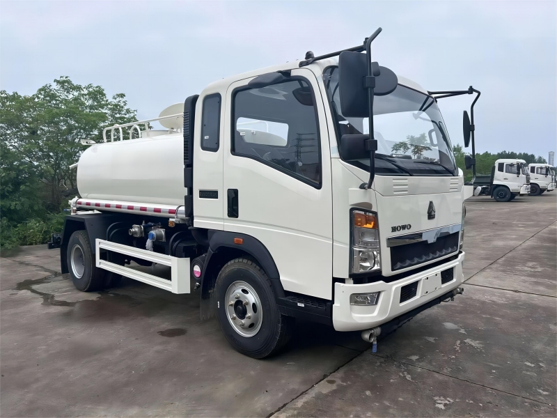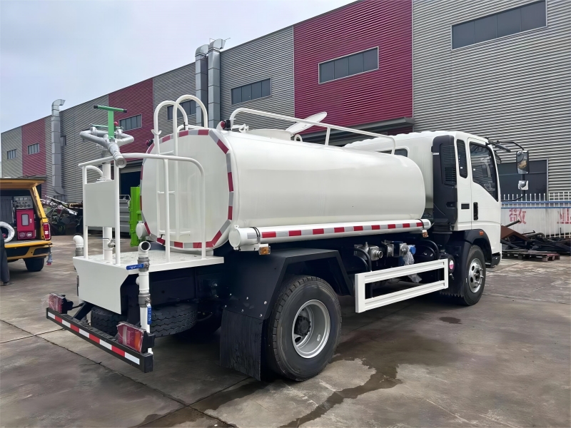 carbon steel water tank, manhole, water pump, front/side/rear spray nozzle, rear working platform, water cannon, fire valve, water valve, filter gauze, water hose, climbing ladder. |